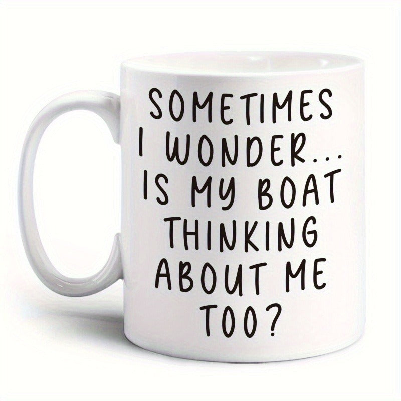 [Unique Thinking Coffee Cups] 1pc, Sometimes I Wonder Coffee Mug, Ceramic Coffee Cups, Is My Boat Thinking About Me Too Water Cups, Summer Winter Drinkware, Birthday Gifts, Holiday Gifts, New Year Gifts, Valentine's Day Gifts