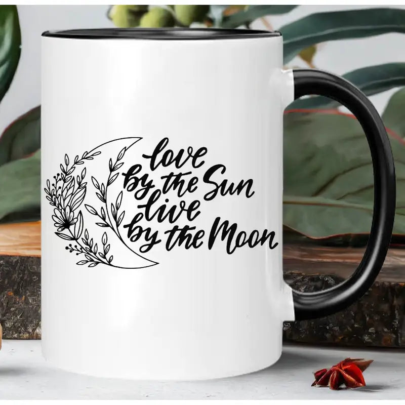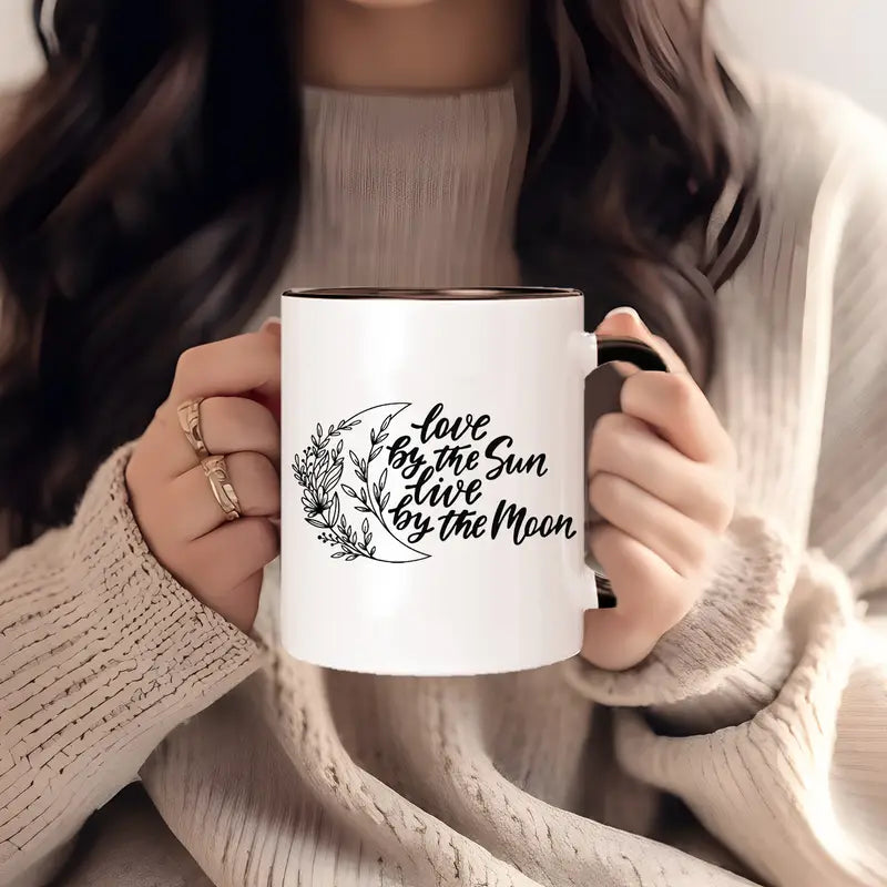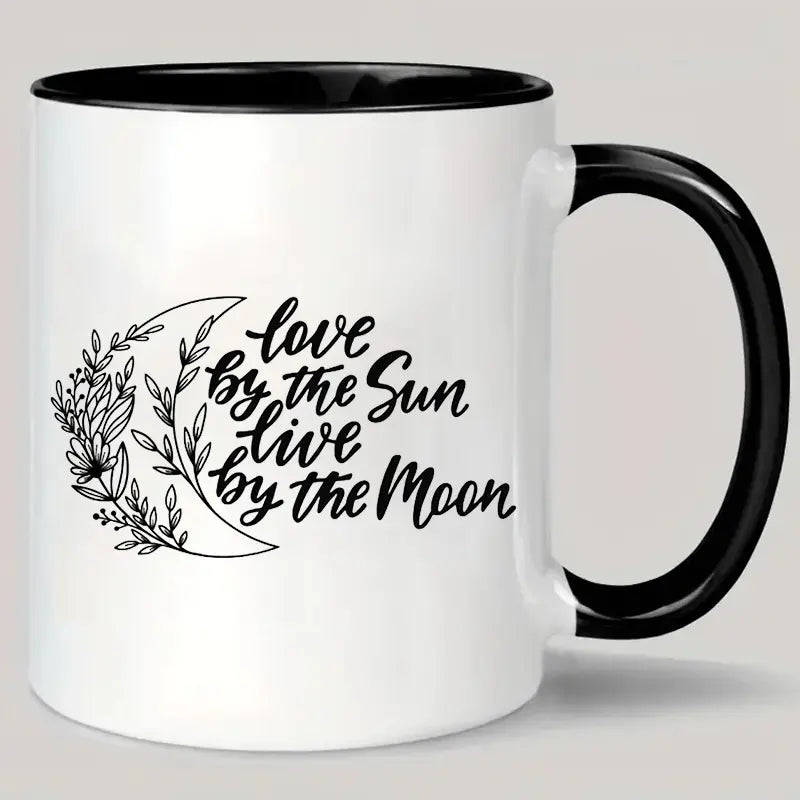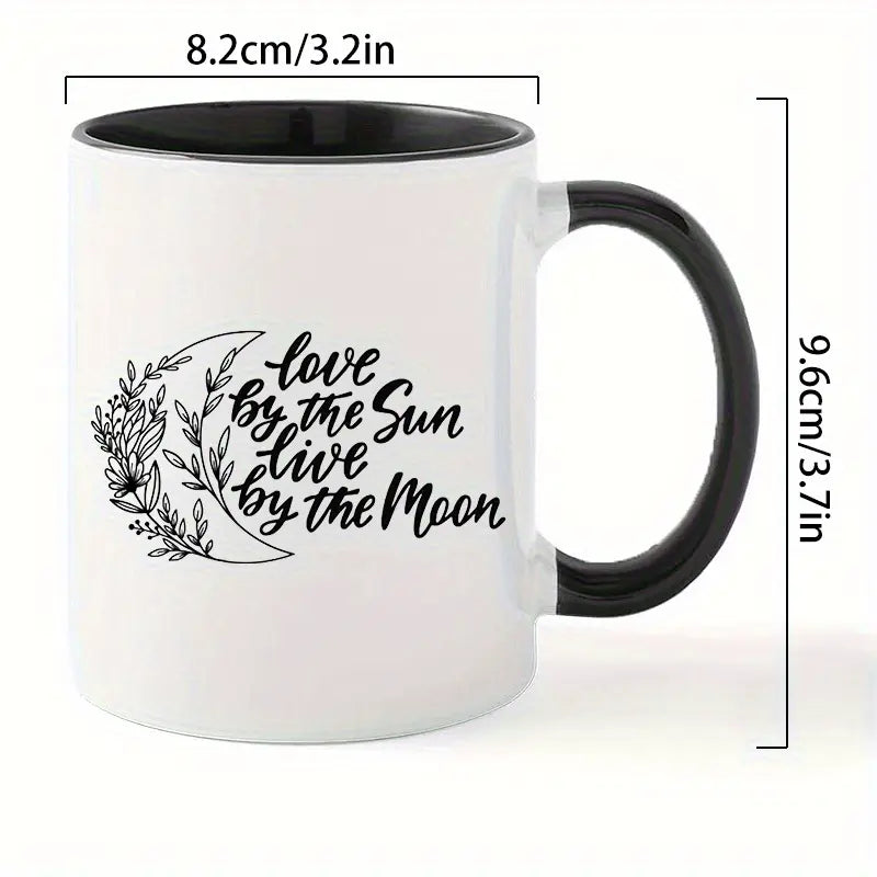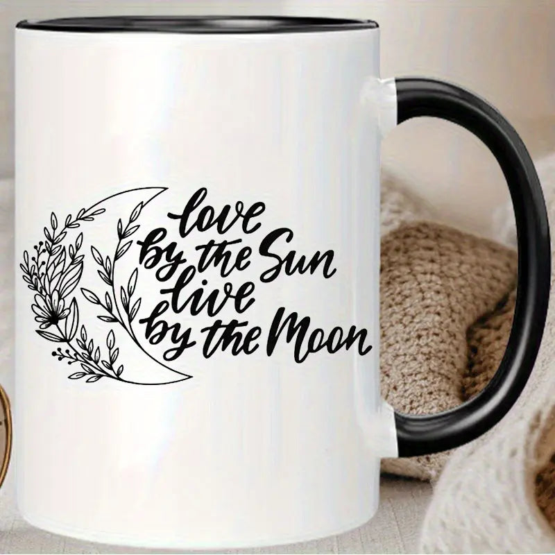 1pc 11oz Ceramic Coffee Mug with Inspirational Quote - Love by the Sun, Live by the Moon