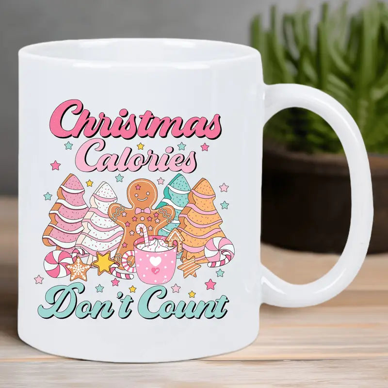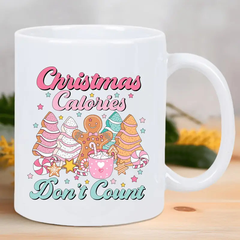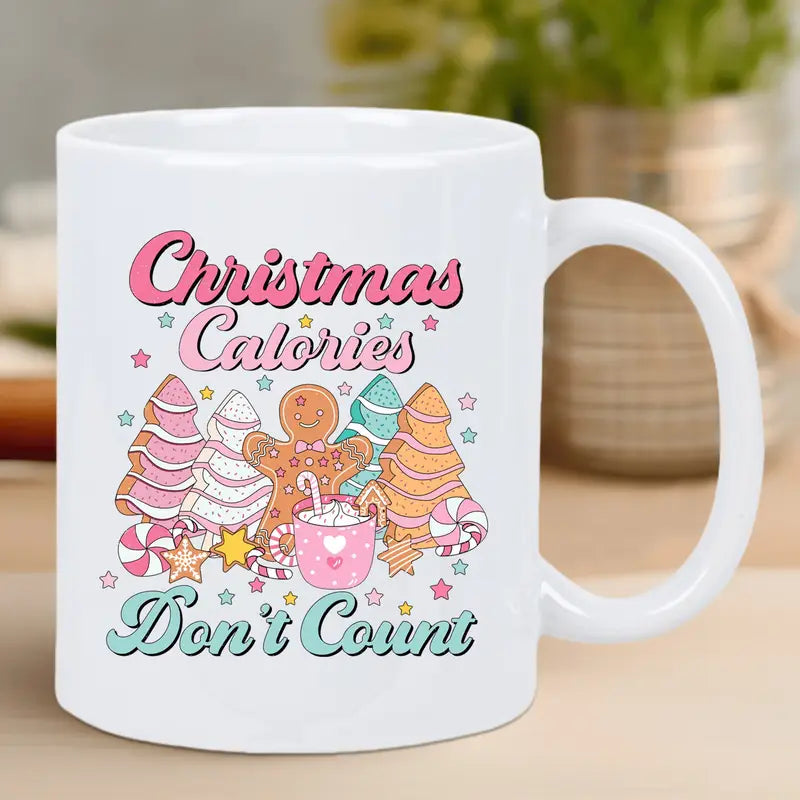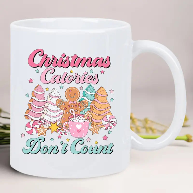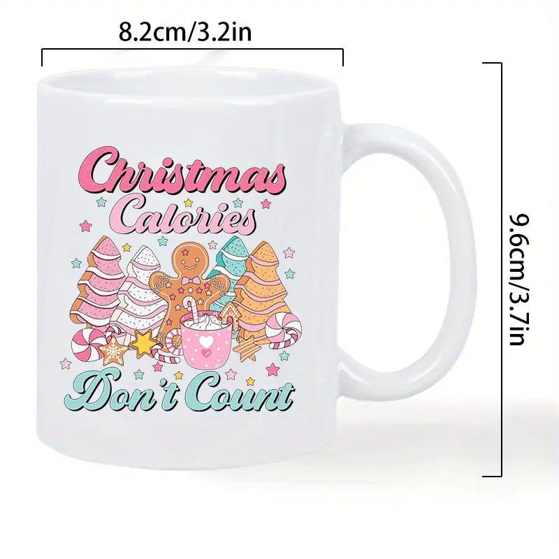 1pc Festive Christmas Mug - "Calories Don't Count" Design with Gingerbread Men & Candy Canes - Reusable, Insulated, Hand-Wash Only