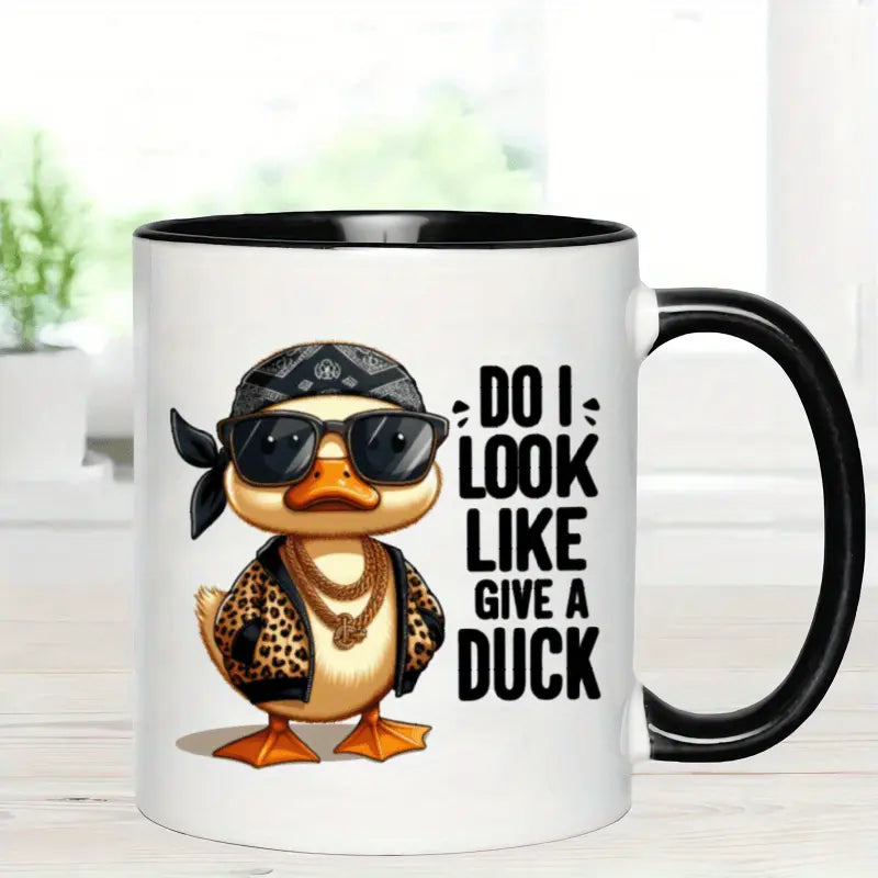 1pc Funny "Do I Look Like I Give a Duck" Mug, 11oz Ceramic Coffee Cup with Cool Duck Design, Insulated & Machine Washable, Perfect Humor Gift for Friends & Family, Ideal for Home & Office Use, Coffee Bar Accessories