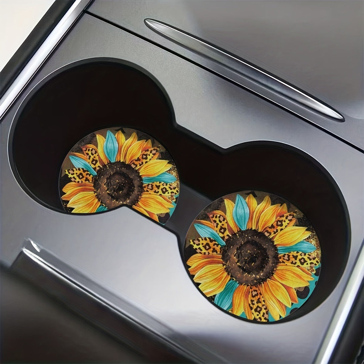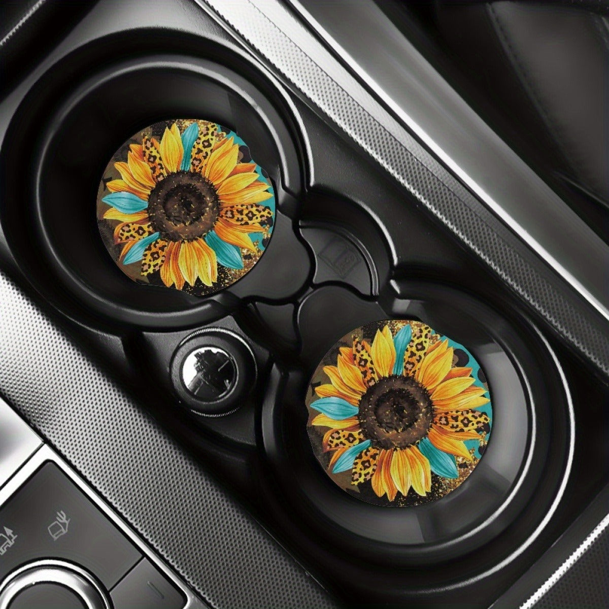 2pcs Protect Your Car's Cup Holders with Sunflower Pattern Water Coasters - Set of 2