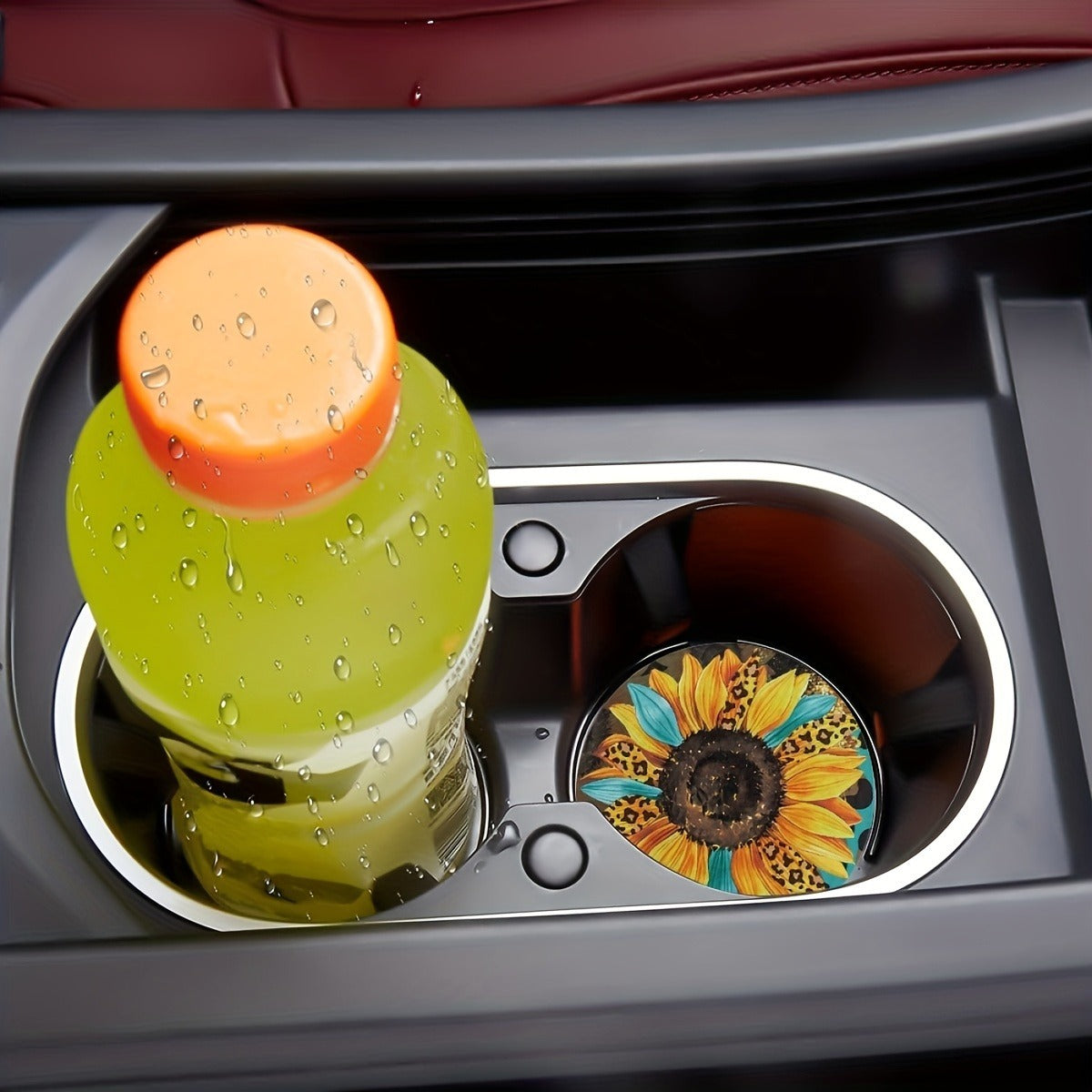 The 2PCS Sunflower Pattern Water Coasters are a perfect blend of style and function, making them an ideal accessory for your vehicle!