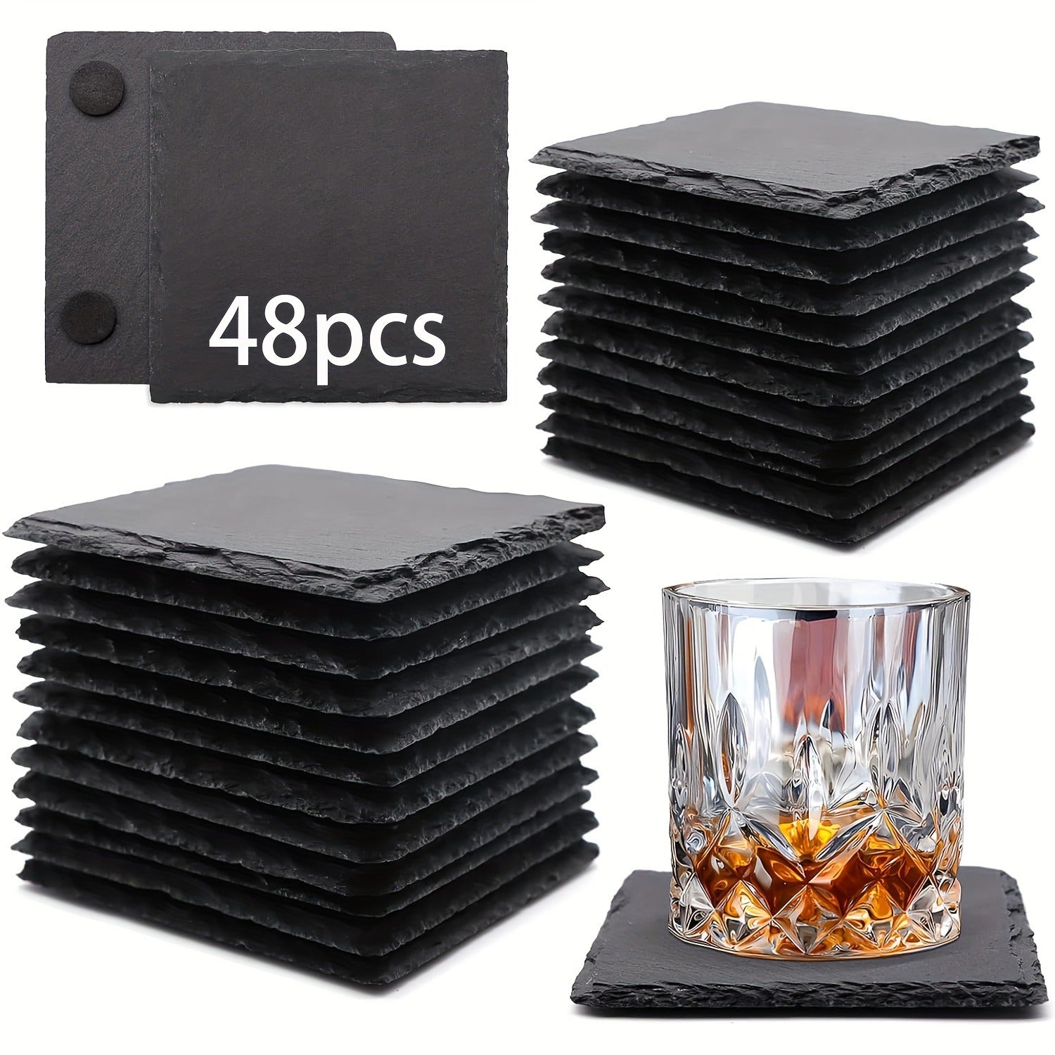 48 Square Slate Coasters Or 96 Square Slate Beverage Coasters, 4.02 inch, Black Slate Coasters, Scratch Resistant Bottom, For Drinks, Bars, Kitchens, Home Décor