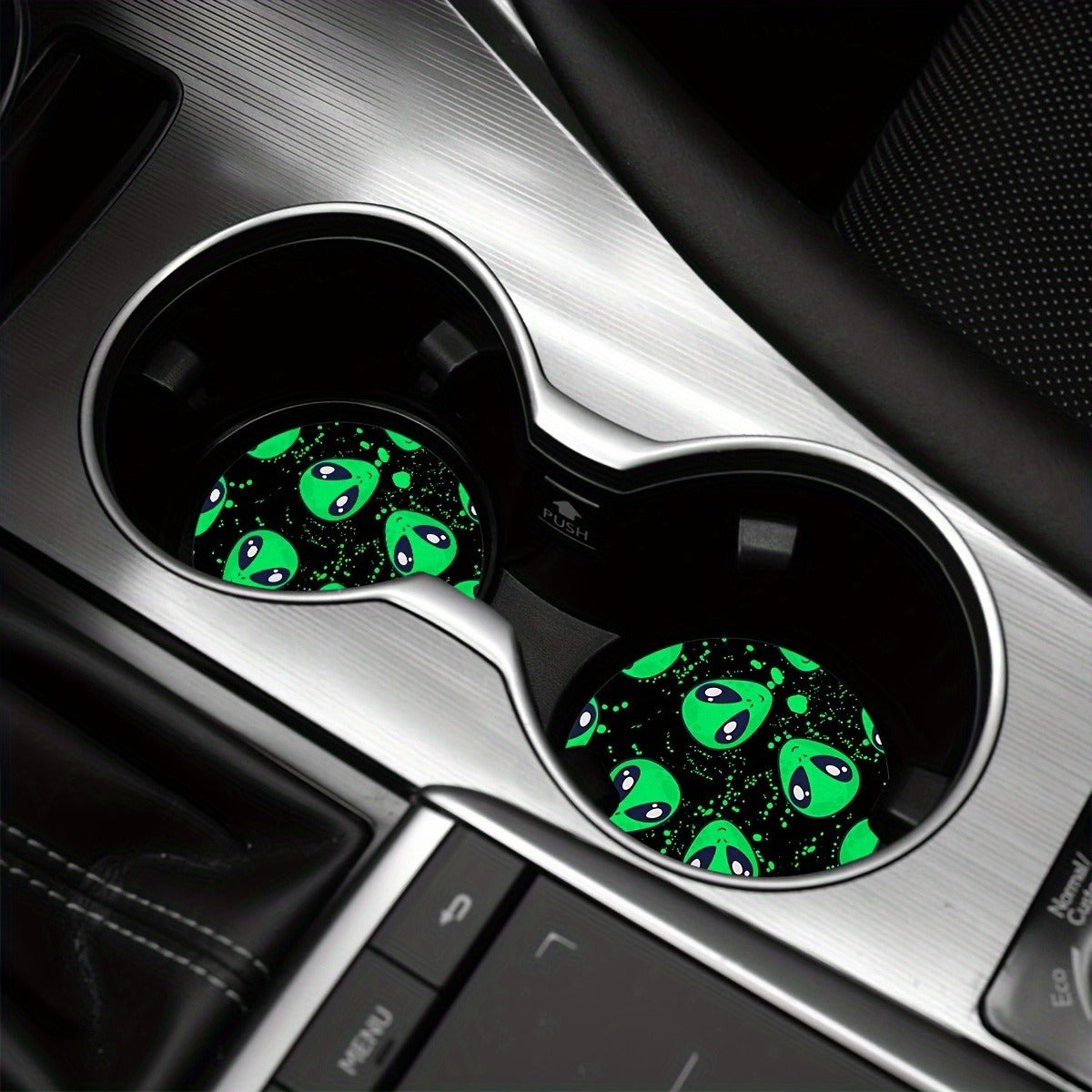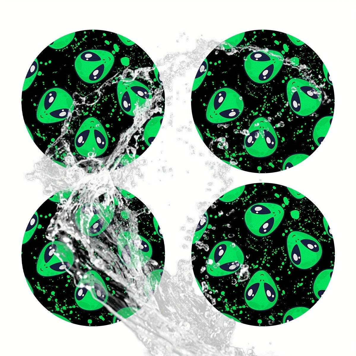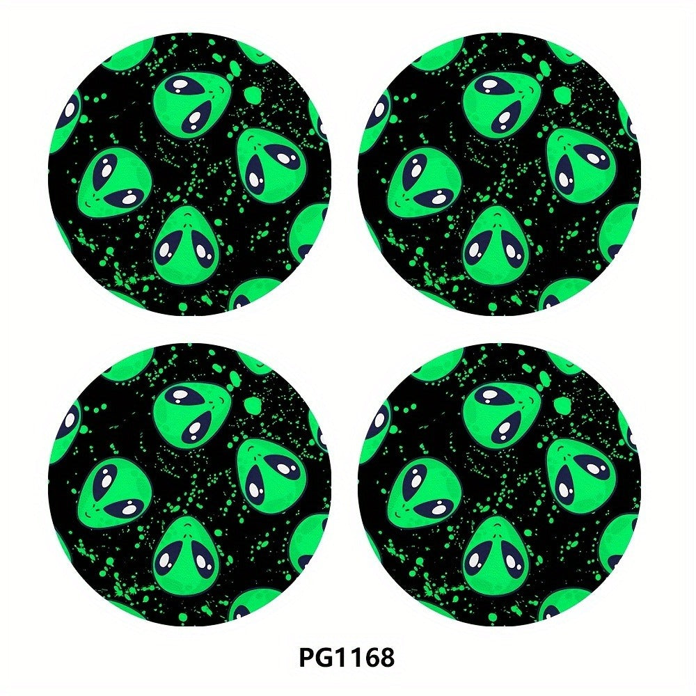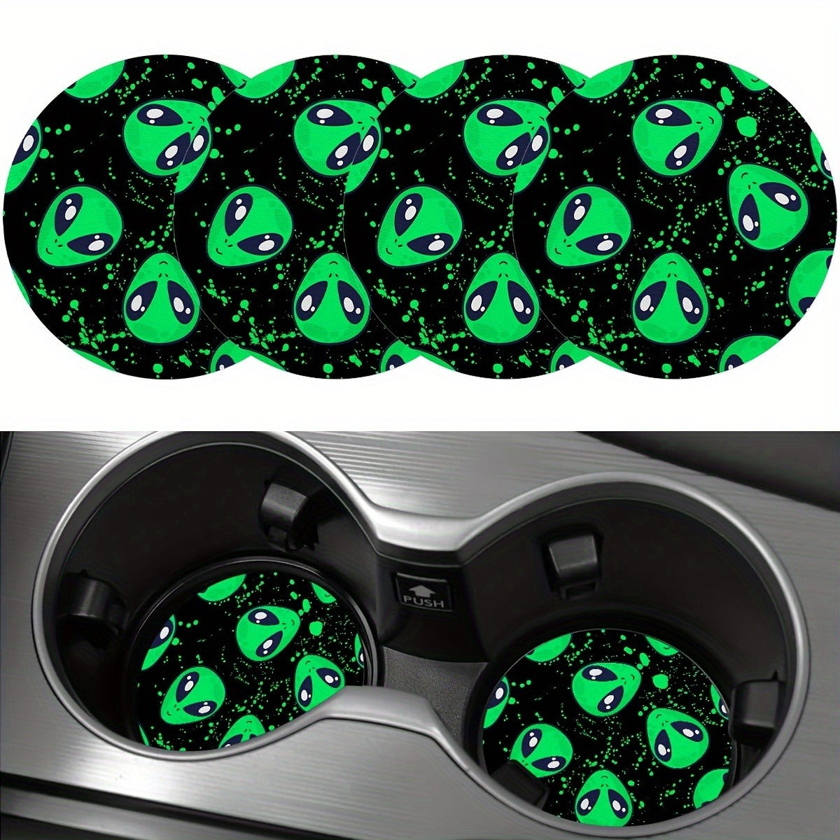 4PCS Alien Car Coaster, 2.75in Round PU Leather Trim Car Coaster, Home & Car Water Coaster, Drink Mat Male & Female Car Interior Accessories, Decorative Coaster