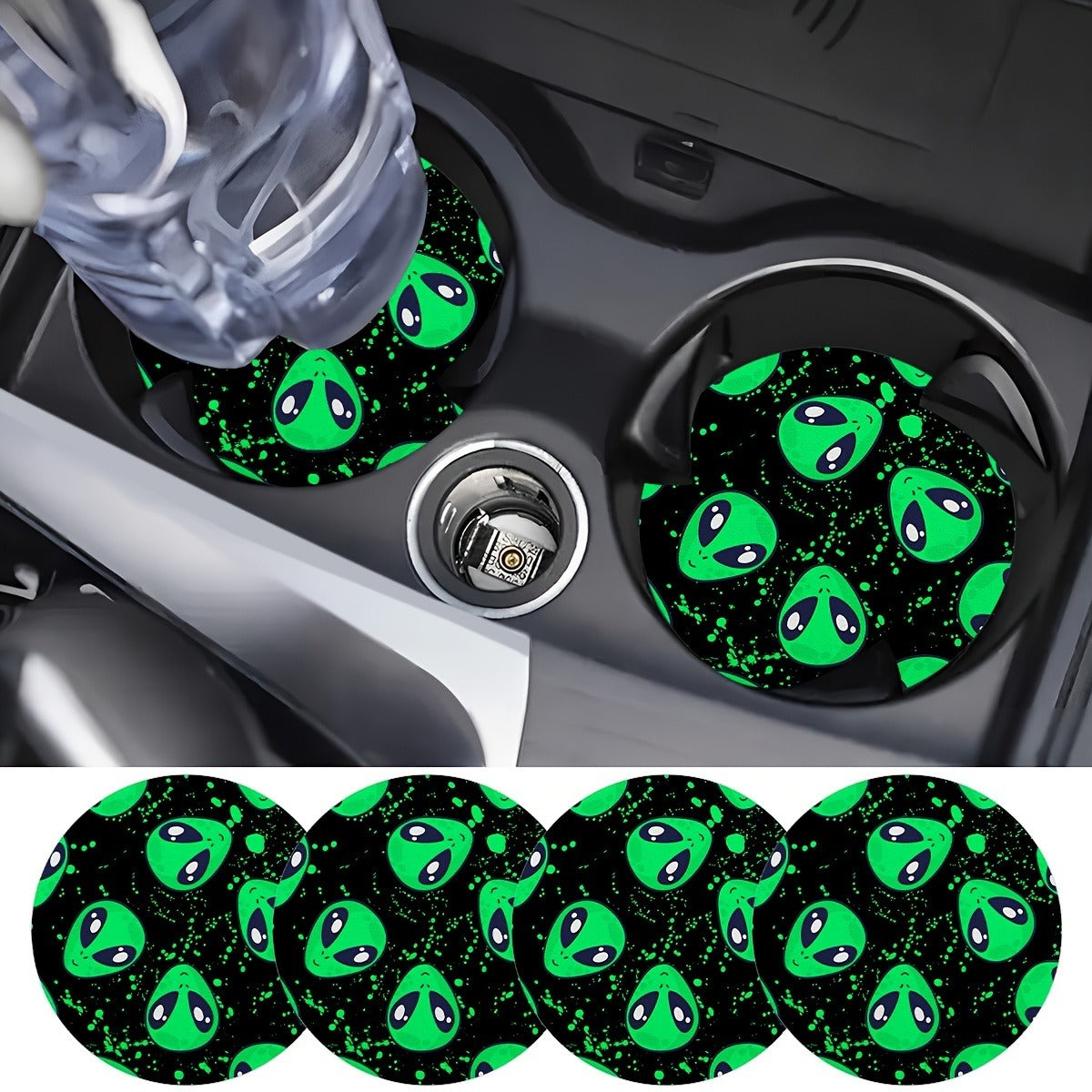 The 4PCS Alien Car Coasters combine fun design with practical functionality, making them a great addition to your vehicle or home!