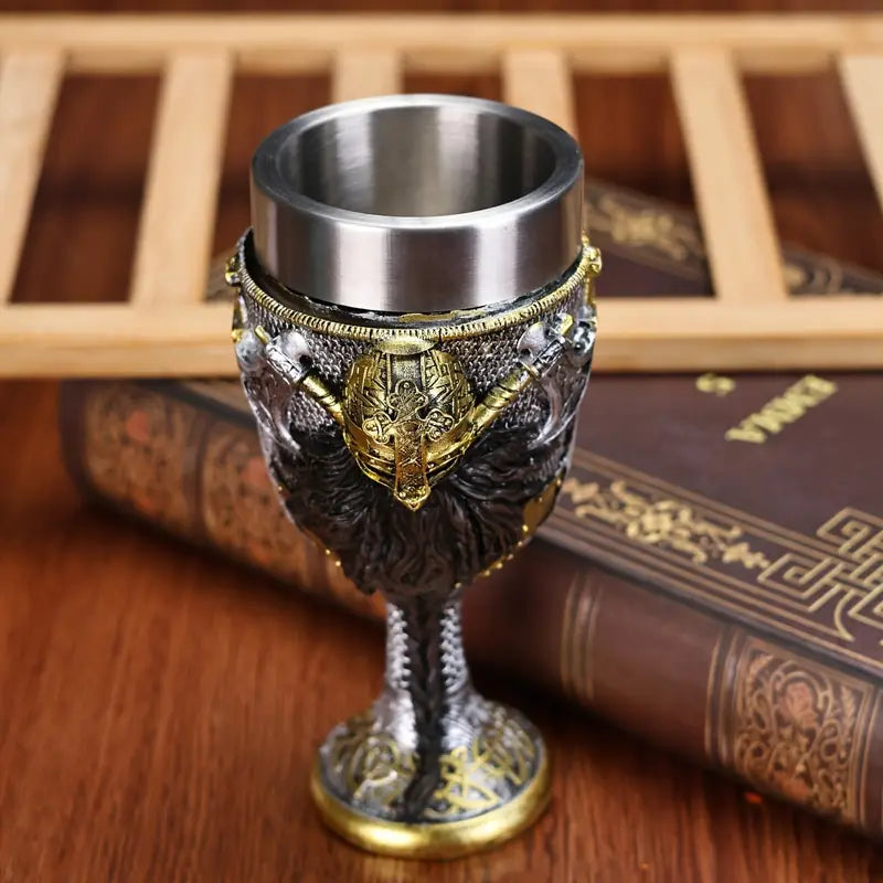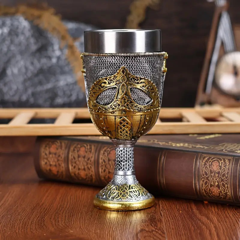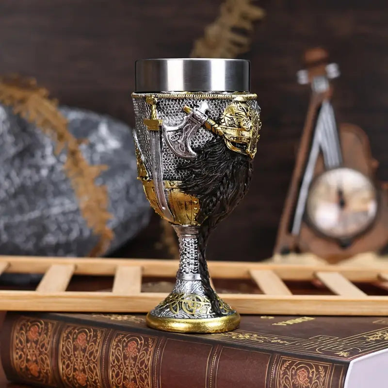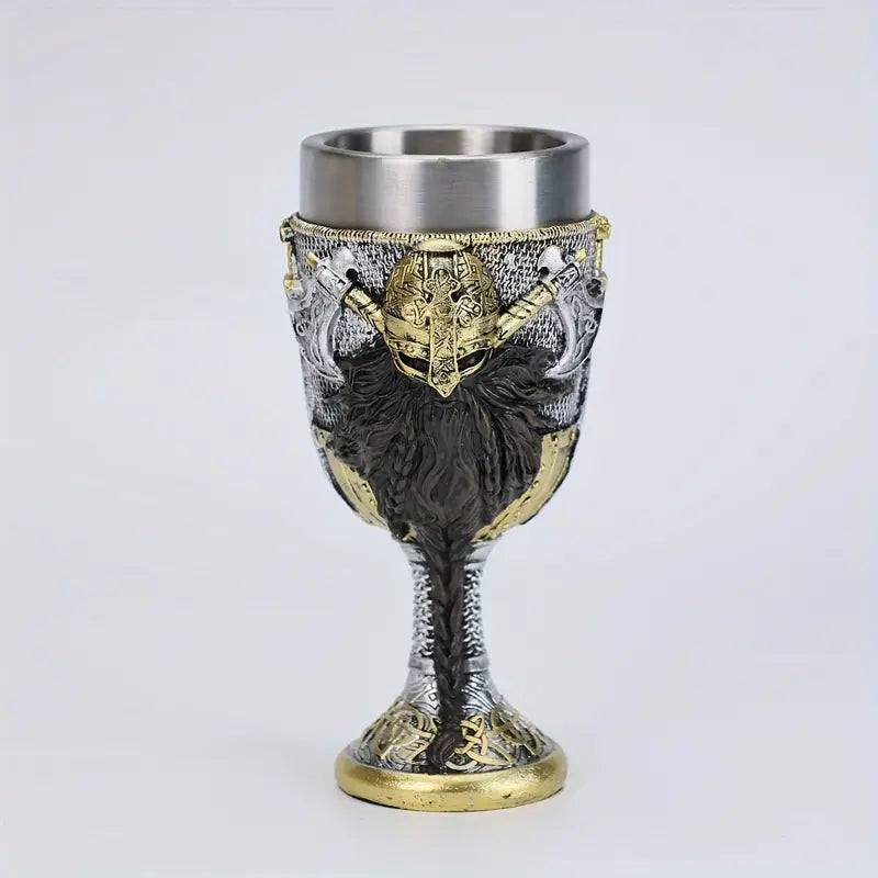 A Nordic Viking Warrior Wine Glass, 3D Viking Pirate Stainless Steel Red Wine Glass, Bar Cocktail Glass, High-Value Viking Desktop Decorative Wine Glass, Christmas Gift