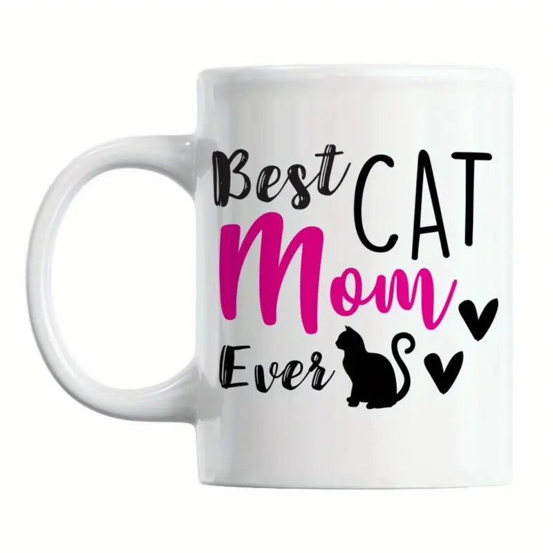 Best Cat Mom Ever 11oz White Ceramic Mug with Pink & Black Double-Sided Print - Insulated, Machine Washable, Ideal Gift for Mother'S Day, Coffee & Tea Lovers, Perfect for Home or Office Use