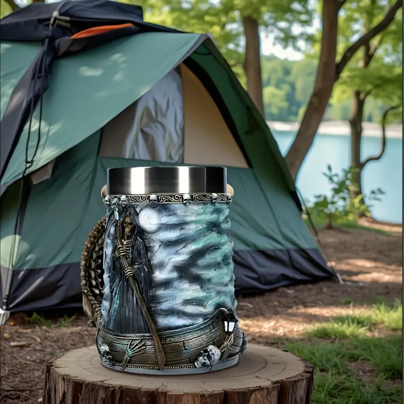 Halloween Reaper Beer Cup, large capacity 20.3oz, Reaper Comes Stainless Steel Draft Beer Cup, large capacity Mark Coffee Cup, Reaper Sickle Water Cup, suitable for gatherings of 8 people, Best for Christmas, Perfect for Thanksgiving