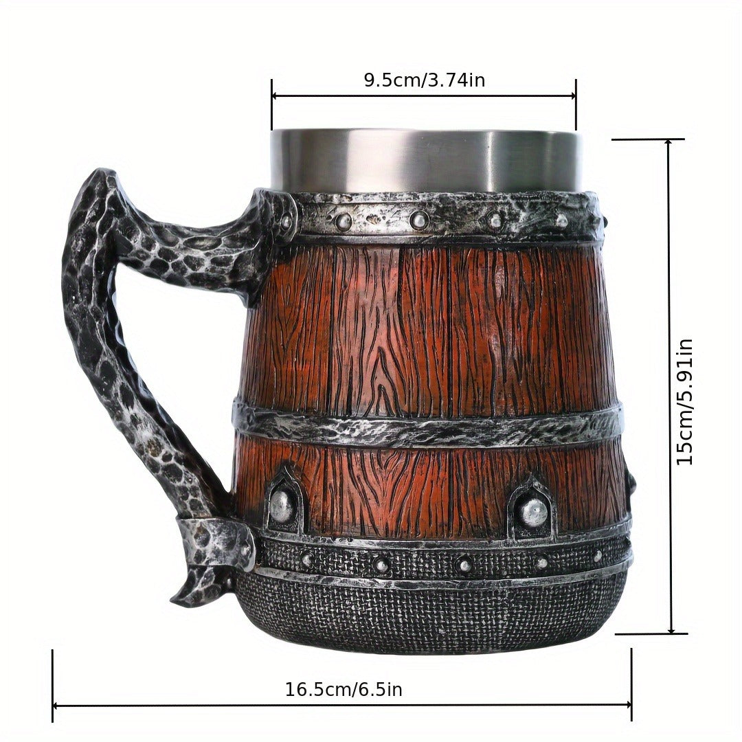 Handmade Barrel Design Beer Mug 20.29oz - Stainless Steel Insulated Coffee Mug - Striped Pattern & Snake Handle, Hand Wash Only - Reusable, Ideal for Family, Adult - Great for Christmas, Halloween, Easter, Thanksgiving, Father's Day Gifts