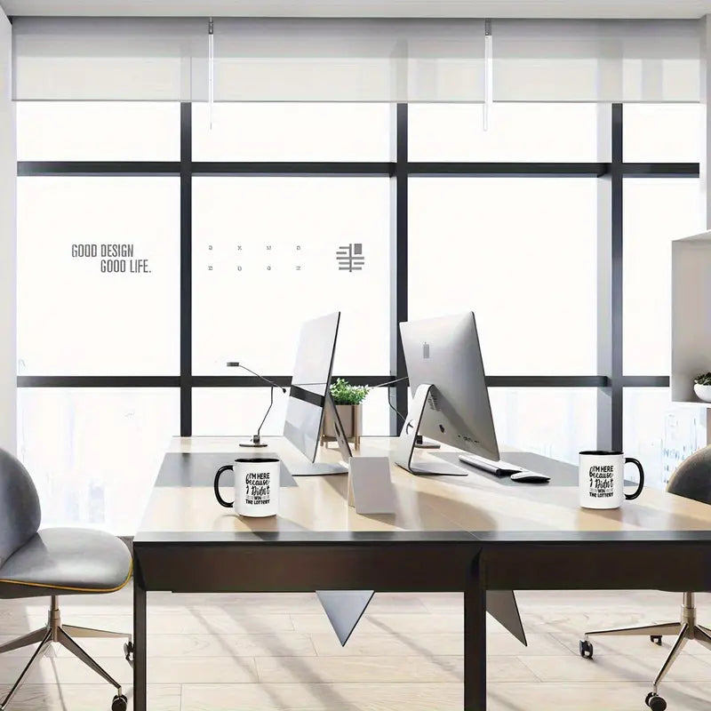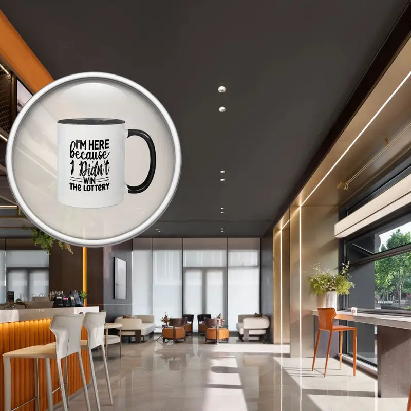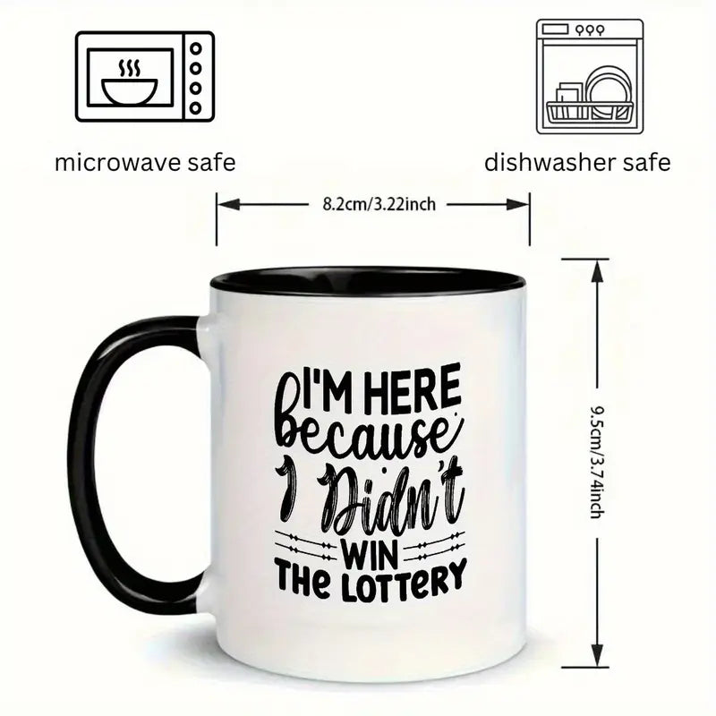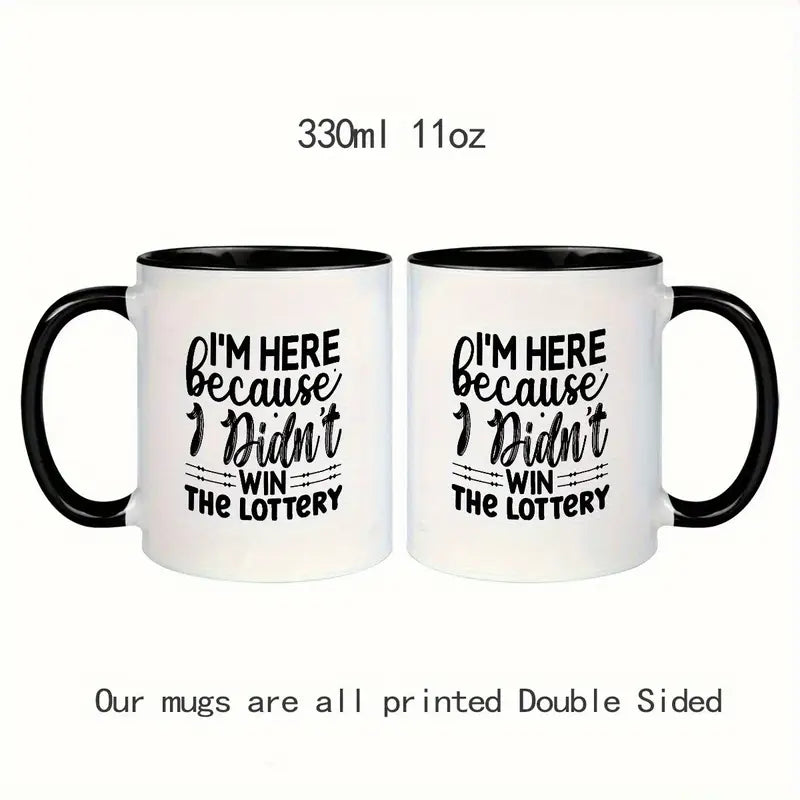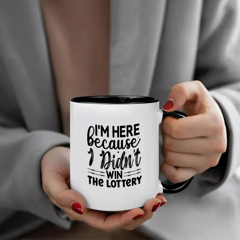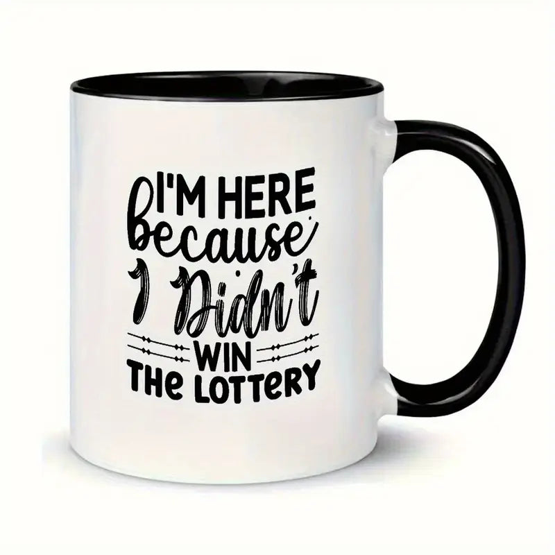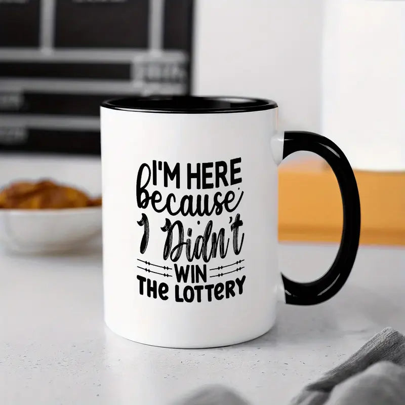 Humorous Quote Mug - "I'm Here Because I Didn't Win the Lottery" - Ceramic Coffee Cup with Black & White Design