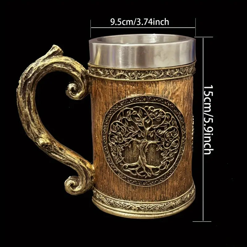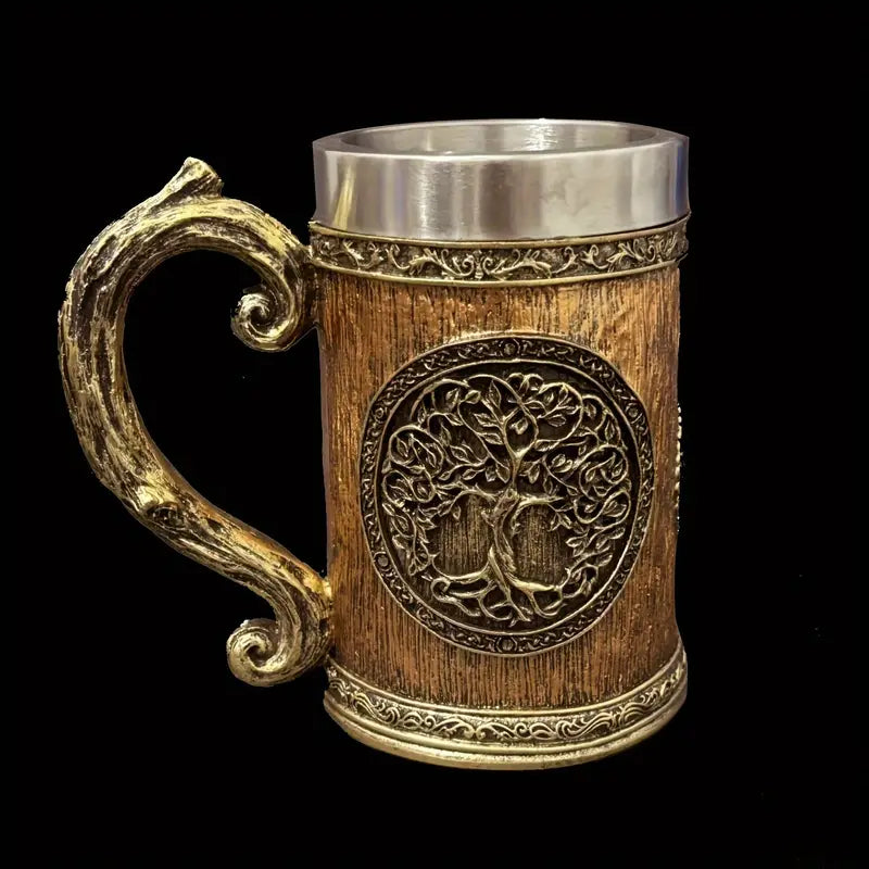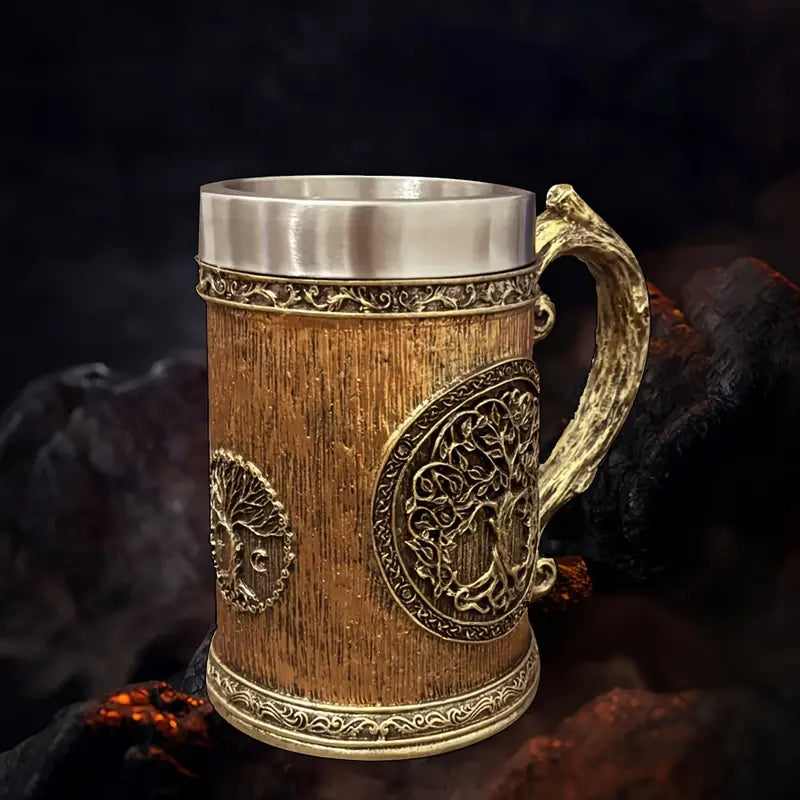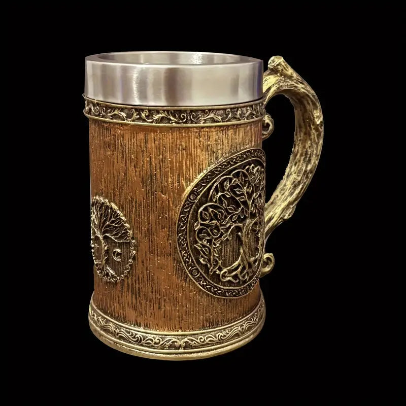 TREE BEER STEIN: 600ml Stainless Steel Mug with Tree of Life Design – Handcrafted Vintage Tankard for Ale & Beverages – Recyclable, Non-Slip, Multipurpose – Ideal for Christmas & Halloween Gifts